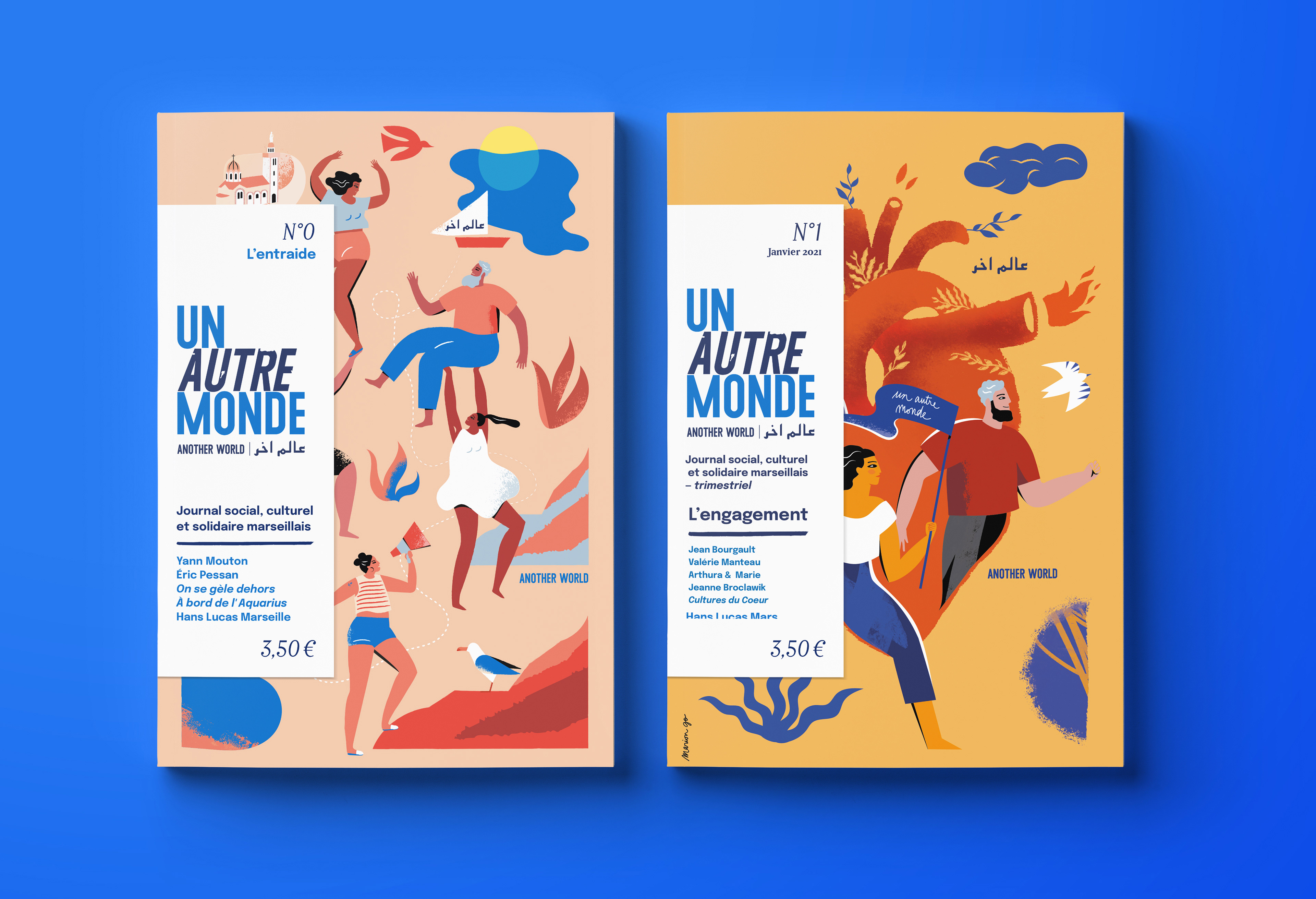 Direction artistique du Journal social et culturel de rue marseillais Un Autre Monde, projet imaginé et dirigé par Françoise Beauguion.